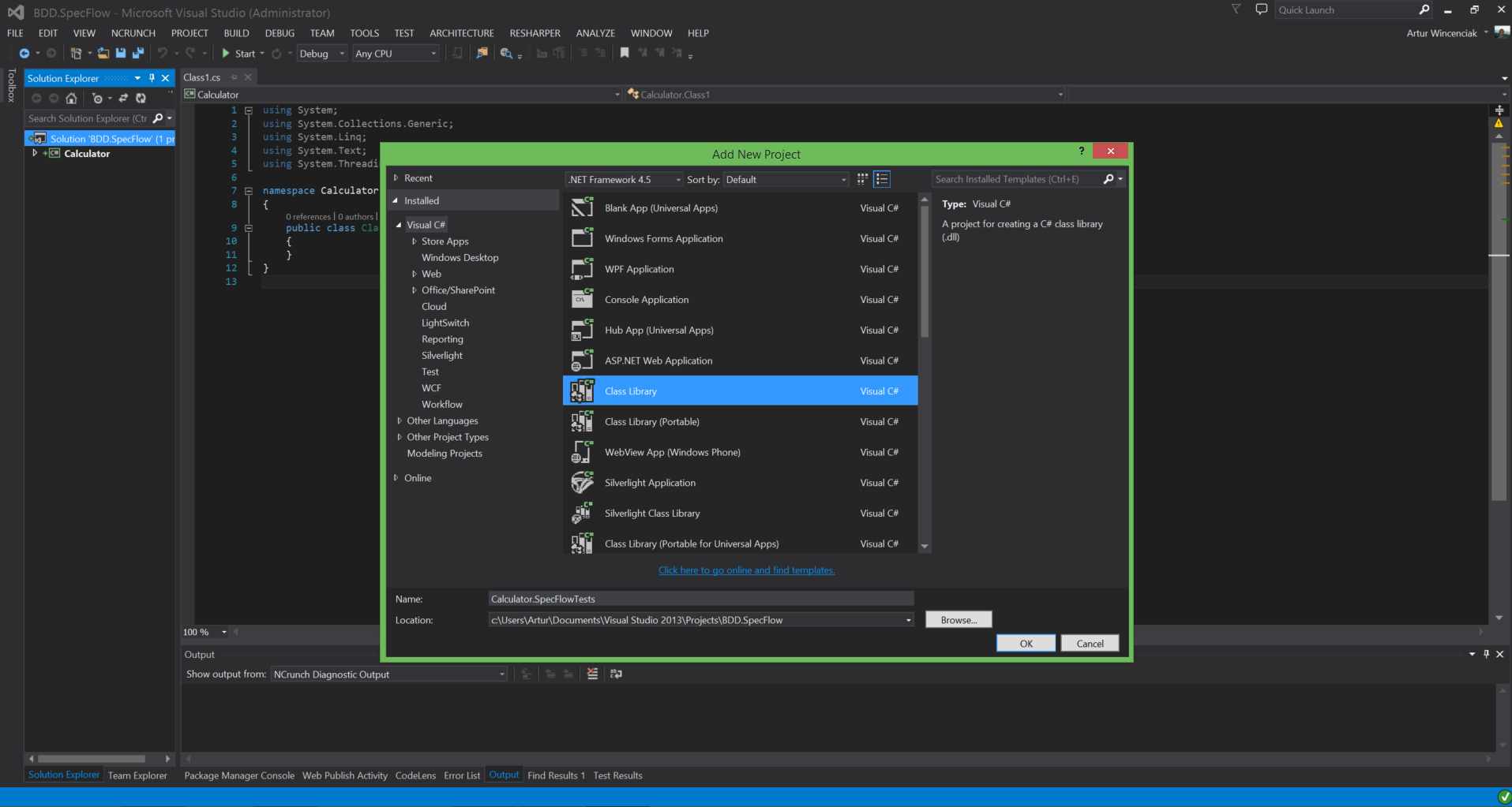 14 stycznia 201814 stycznia 2018 by Teo Vincent Artur Wincenciak 08. Nowy projekt Dodaj komentarz Oprócz projektu, w którym będę implementować logikę kalkulatora, potrzebuję również projekt, w którym będę definiować wymagania biznesowe dla tego kalkulatora oraz sprawdzać, czy są one spełnione.