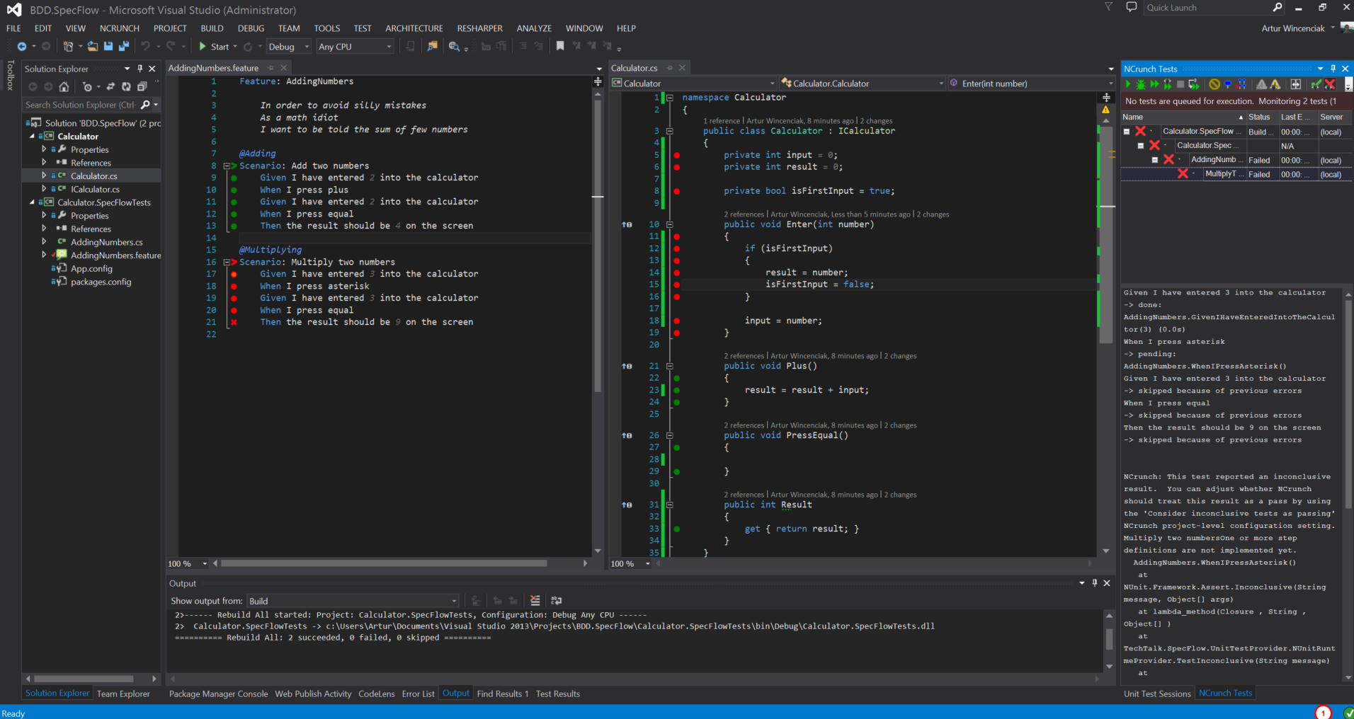 14 stycznia 201814 stycznia 2018 by Teo Vincent Artur Wincenciak 25. Mnożenie dwóch liczb Dodaj komentarz Kolejna funkcjonalność to mnożenie dwóch liczb. Test pali się na czerwono, ponieważ nie ma jeszcze kodu dla tego scenariusza.