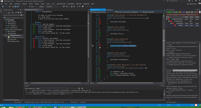 14 stycznia 201814 stycznia 2018 by Teo Vincent Artur Wincenciak 26. WhenIPressAsterisk Dodaj komentarz Po przegenerowaniu testów, analogicznie jak na samym początku, pojawia się tutaj nowa metoda „WhenIPressAsterisk”, która wymaga implementacji.